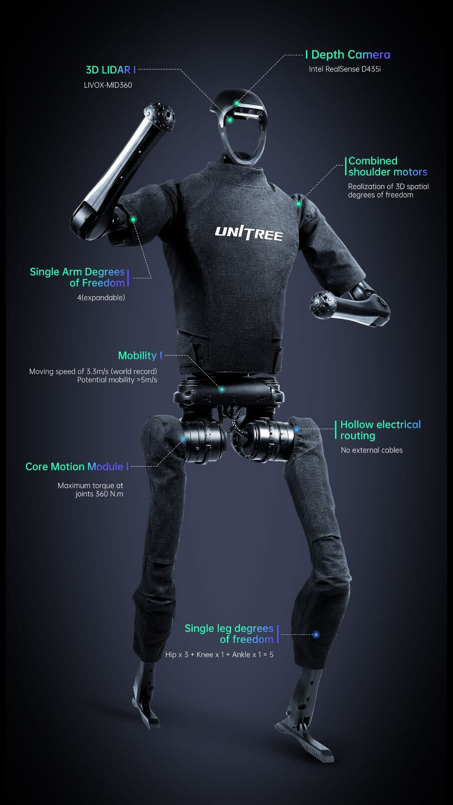 One of the key features of STAR1 is its 12 degrees of freedom which is essential not only for running but also for agility and balance. In the robotics context, it represents the total number of joints of a robot and the range of movement possible at these joints. This advancement in the joint system of STAR1 allows it to navigate and tackle challenging real-world scenarios and closely resembles human motion.