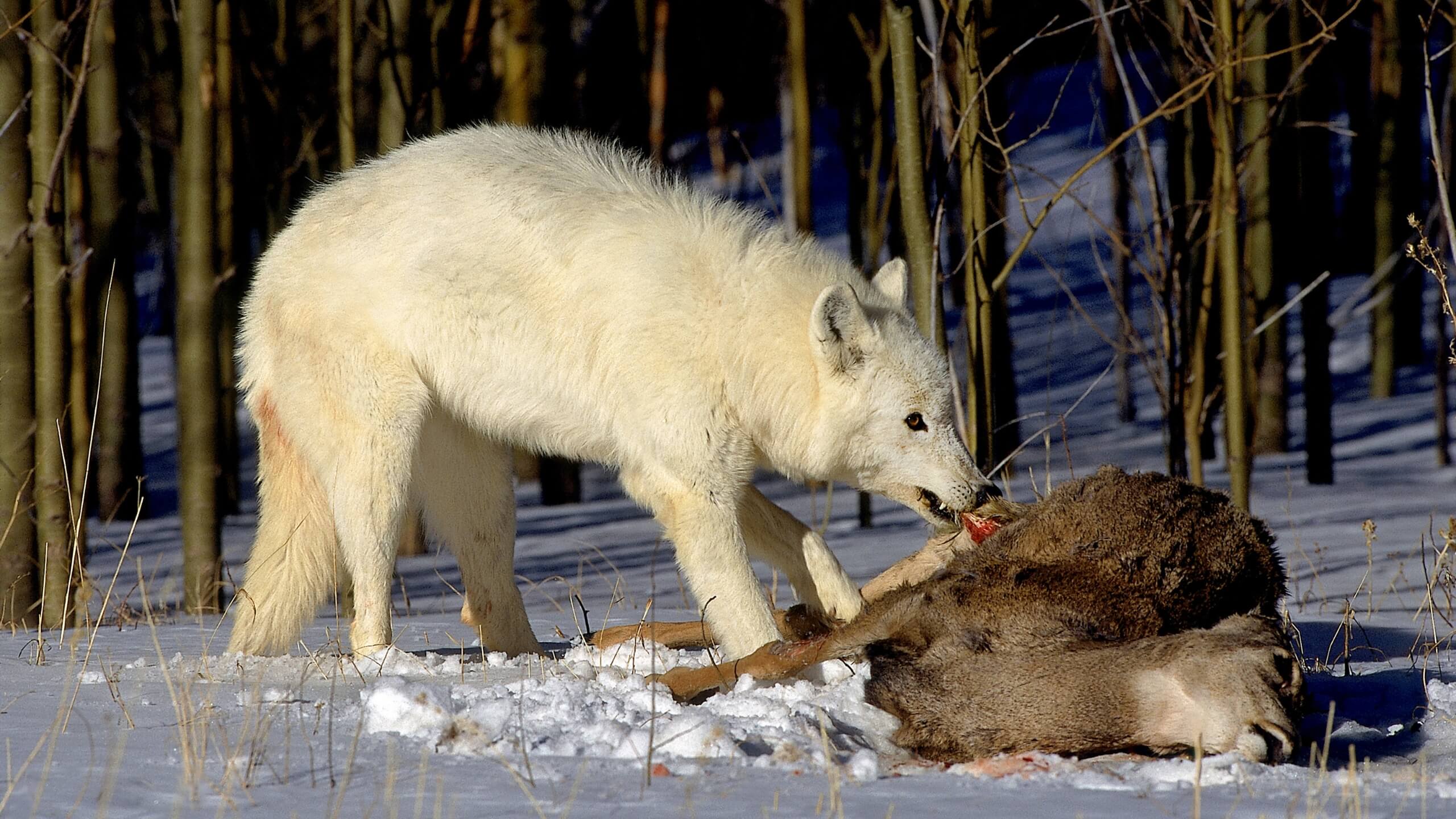 Arctic wolves primarily eat in their natural habitats, which include the tundra and Arctic regions of North America and Greenland. They hunt and consume their prey in various locations within their territory. These areas include open landscapes, snow-covered terrain, frozen lakes, and rocky slopes. They are adjusted to survive in harsh environments.