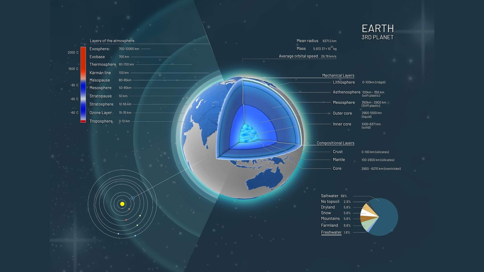 Asteroidal Material and Solar Gas: Recent research suggests that Earth’s water may have originated from asteroidal material and gas leftovers from the Sun.